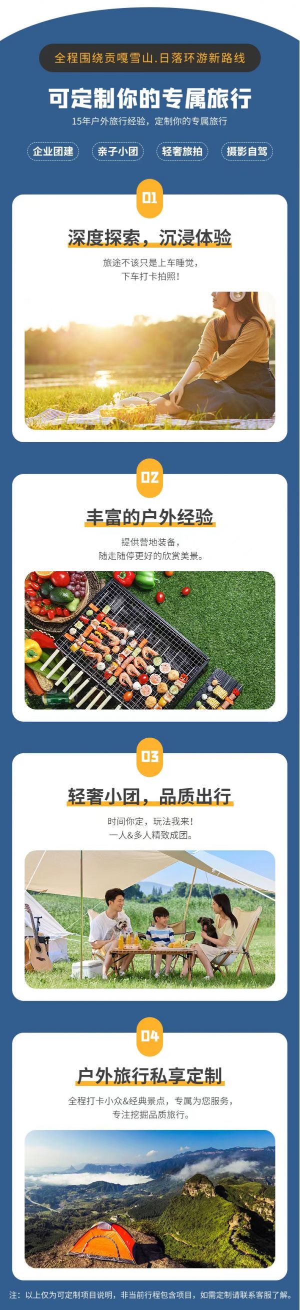 私人訂制:我們業(yè)務范圍囊括了全國各大城市,川西、西北、新疆、西藏,在路上永遠有我們的身影。我們將為每一個有定制需求的你策劃出獨屬于自己的完美旅行。