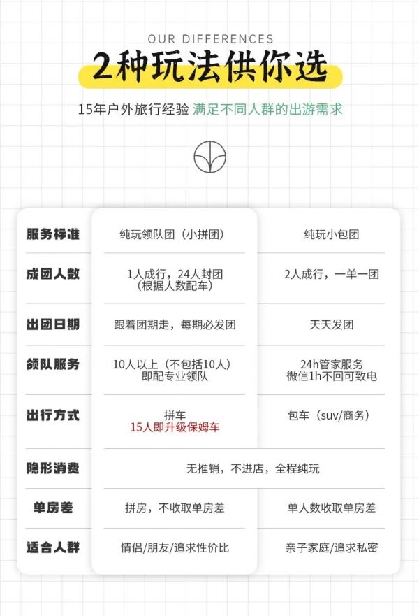 私人訂制:我們業(yè)務(wù)范圍囊括了全國各大城市,川西、西北、新疆,在路上永遠有我們的身影。我們將為每一個有定制需求的你策劃出獨屬于自己的完美旅行。