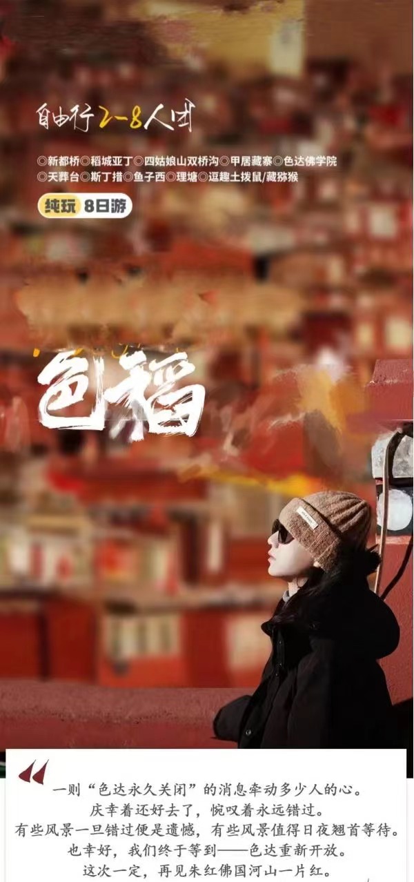 (8)旅游旺季來臨,色達(dá)接待能力有限,特此天葬臺、五明佛學(xué)院均有限流需提前預(yù)定。