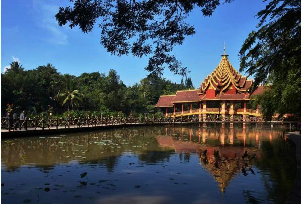 早餐:酒店早餐 中餐:孔雀宴 晚餐:自理早餐后,乘車抵達扶貧旅游示范村,參觀【傣族文化村落】(游覽時間約180分鐘),是西雙版納唯一集中展示傣族歷史、文化、宗教、體育、建筑、生活習俗、服飾、飲食、生產生活等為一體的民俗生態(tài)旅游精品景區(qū)。幢幢精巧別致的傣家竹樓和佛寺古塔掩映在綠樹叢中,透著一種自然、純樸、寧靜。這里江湖環(huán)抱、綠樹掩映,花果飄香,梵音繚繞,給人一種神秘,祥和的感受。在這里人與人、人與自然和諧相處 , 這是傣家人的勐巴拉納西,傣家人的人間天堂.大家可以體驗濃郁的傣家生活習俗, 觀賞典型的干欄式建筑、傳統(tǒng)的手工藝制作、傣族民間歌舞,以及接觸到神秘的小乘佛教文化。后前往游覽【勐泐大佛寺】(游覽時間約 120 分鐘,電瓶車自理單程 40 元/人、往返 60/人,建議乘坐單程)。國家AAAA級景區(qū),也是傣王故宮遺址的重要部分,勐泐大佛寺是在古代傣王朝的皇家寺院"景飄佛寺"的原址上恢復重建的,"景飄佛寺"是傣族歷史上一位名叫撥龍的傣王為紀念病故的王妃南紗維扁而修建,從萬佛塔前廣場俯視景洪市景,旖旎的熱帶風光盡收眼底,景區(qū)以弘揚“南傳佛教文化”為中心,也可參與傣家潑水狂歡活動,與雨林精靈——孔雀親切互動,看孔雀齊飛盛景、明鏡臺-玻璃棧道 由景區(qū)山頂向景洪市區(qū)方向延伸,是跨度長45米,寬度24米,總面積約800m的懸空玻璃觀景平臺,取偈語“身是菩提樹,心如明鏡臺”,打造“明鏡菩提”的獨特意境。