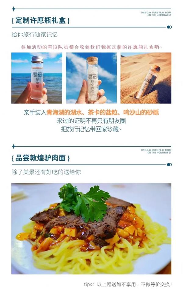 tips:西寧集合酒店為贈送酒店,酒店以實際安排為準均不退不換不指定,如要更改酒店產(chǎn)生的費用需要自行承擔。(4)品嘗敦煌驢肉面。