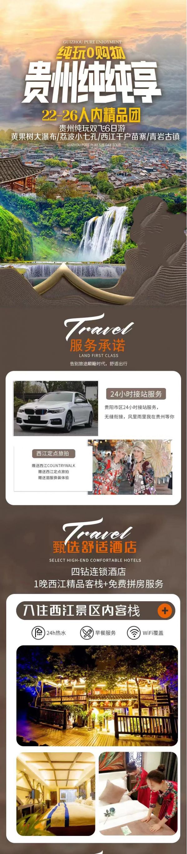 ★備注:貴州為國(guó)家三線以下旅游城市,酒店各項(xiàng)標(biāo)準(zhǔn)偏低,主要以衛(wèi)生舒適為主,提前做好心理準(zhǔn)備哦!如客人對(duì)上述參考酒店安排不滿意,處理方案如下:1、按實(shí)收價(jià)格退給客人自行訂房,2、可自補(bǔ)當(dāng)時(shí)差價(jià)升級(jí)客人滿意的更高標(biāo)準(zhǔn)酒店!3如若遇以上酒店無(wú)房情況下,可安排同等級(jí)酒店,如我社拿到比計(jì)劃酒店檔次更高且價(jià)格等同的情況下,可以給客人免費(fèi)升級(jí)!