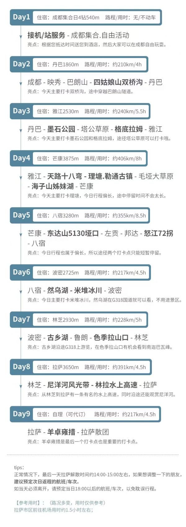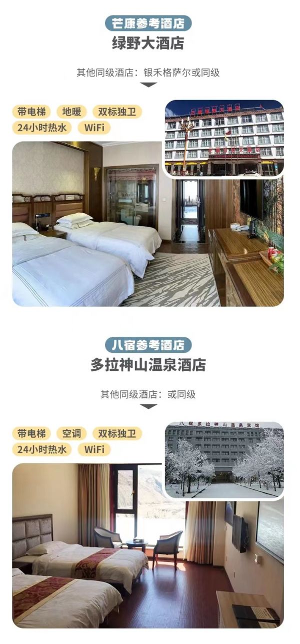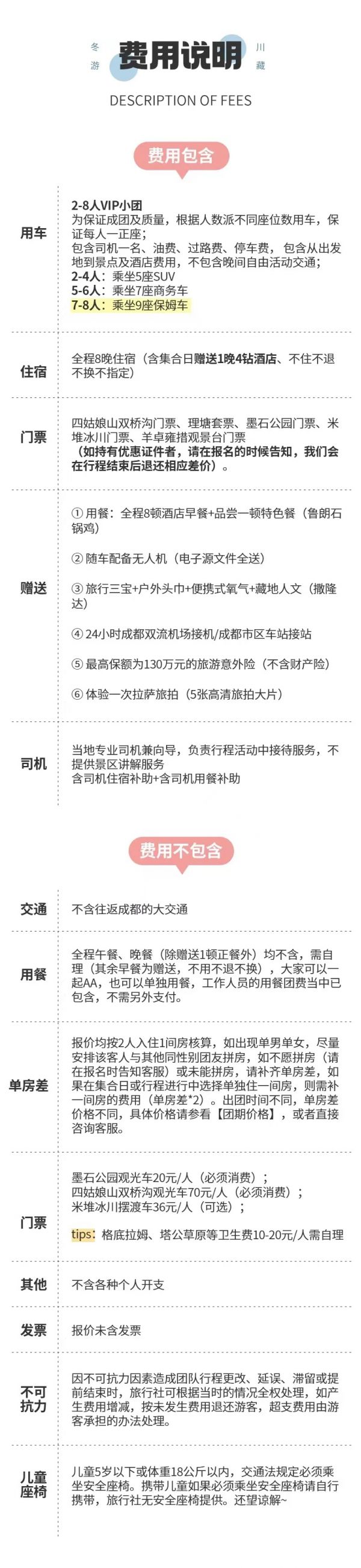 1.冬季11月-次年3月如因魚子西/格底拉姆封山無(wú)法前往,則將魚子西/格底拉姆景點(diǎn)換為八郎生都。