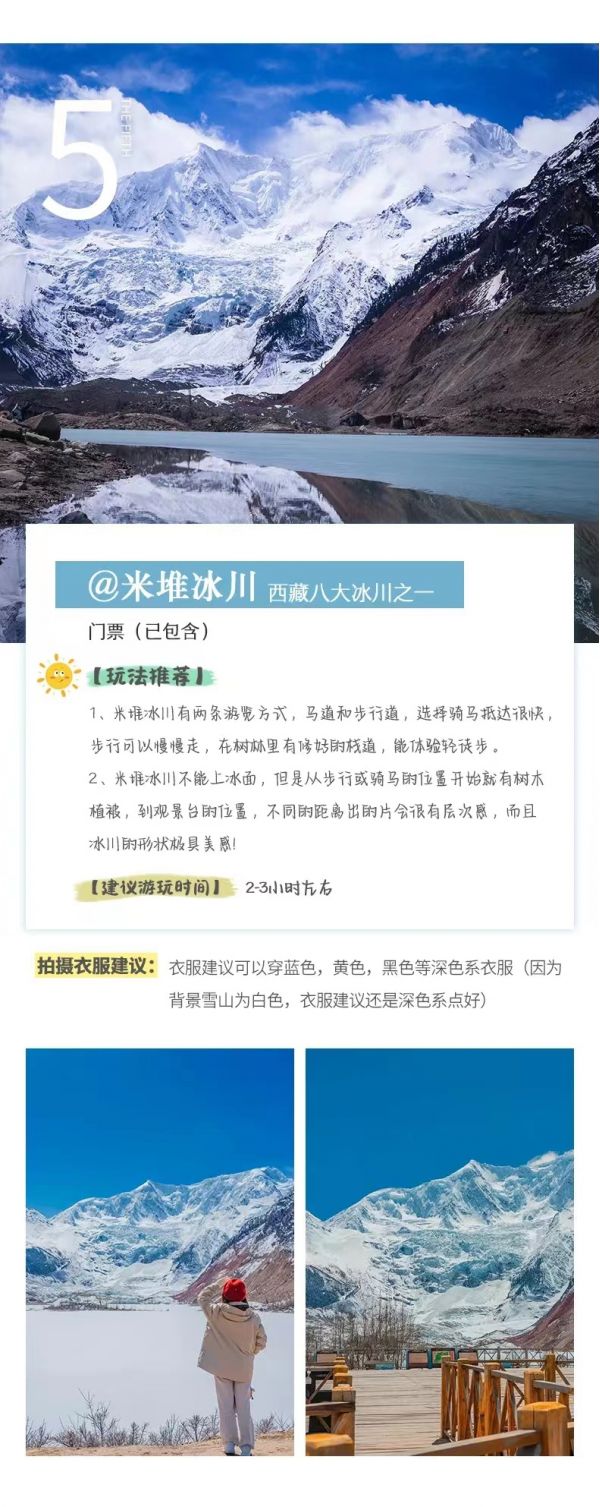 然后我們來(lái)到位于然烏湖北面的著名的【米堆冰川】,冬季更是觀看藍(lán)冰的最佳時(shí)機(jī),米堆冰川位于藏東南的念青唐古拉山與伯舒拉嶺的接合部,這里是我國(guó)最大季風(fēng)海洋性冰川的分布區(qū)。該冰川常年雪光閃耀,景色神奇迷人。山上冰川融化出涓涓細(xì)流在千百年的努力下漸漸割開(kāi)了冷硬的凍土,孕育出了川藏線的明星然烏湖,也成了河谷地帶人們安居樂(lè)業(yè)的希望所在。