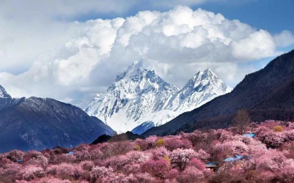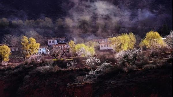 林芝的桃花就開(kāi)始覆蓋山坡