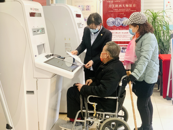 結(jié)合老年人實(shí)際需求配置愛心座椅、老花鏡、輪椅、急救藥箱、無障礙坡道或無障礙臨時(shí)坡道等助老便民設(shè)施。同時(shí),設(shè)置“綠色通道”,為有困難、有需要的老年客戶提供業(yè)務(wù)優(yōu)先辦理綠色通道,減少等待時(shí)間。大堂經(jīng)理在招迎、引導(dǎo)、答疑等流程始終做到主動(dòng)熱情、耐心細(xì)致。尤其是,注重對(duì)老年客戶指導(dǎo)和幫助,保障老年客戶在網(wǎng)點(diǎn)安全、順利、快捷地辦理業(yè)務(wù),讓老年客戶感受到更多關(guān)懷。