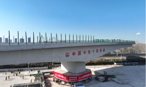 聊城西關(guān)街高架橋東起昌潤路、西至海源路,全長1932米,上跨京九鐵路、南水北調(diào)河,是山東省重大民生項(xiàng)目,是聊城市區(qū)通往高鐵新區(qū)及高鐵站的主干道。此次跨京九鐵路轉(zhuǎn)體梁為目前聊城市噸位最大、跨度最長、轉(zhuǎn)體角度最大、梁面最寬的轉(zhuǎn)體橋工程,這一重要節(jié)點(diǎn)的打通標(biāo)志著聊城西關(guān)街高架橋工程又一關(guān)鍵控制性工程取得重要進(jìn)展,為接下全線通車奠定了堅(jiān)實(shí)基礎(chǔ)。