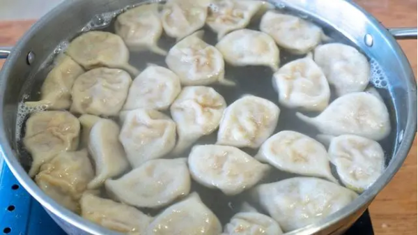 15、燒水的時(shí)候加一勺鹽,這樣煮出來的餃子不會(huì)粘連在一起,水開后下餃子,用鍋鏟撥動(dòng)撥動(dòng)防止粘鍋。