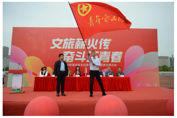 共青團濟南市委副書記林鳴為市文化和旅游局青年突擊隊授旗。突擊隊員代表表示,今后要大力弘揚“艱苦奮斗、銳意創(chuàng)新、團結(jié)奉獻、勇領(lǐng)先鋒”的現(xiàn)代青年突擊隊精神,積極投身到全市各項文旅工作當(dāng)中,充分展現(xiàn)青年擔(dān)當(dāng)。