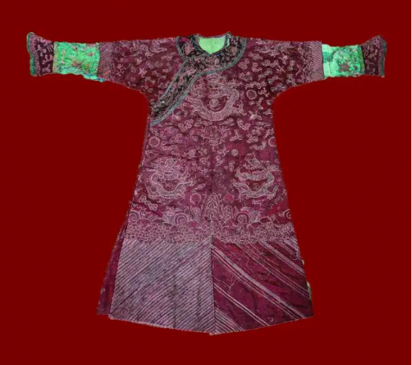 此件清代袍服以綢為地,采用刺繡傳統(tǒng)技法平金繡,個別紋樣在金線上以彩色絲線施繡,是山東大學(xué)創(chuàng)辦歷程的珍貴實物。