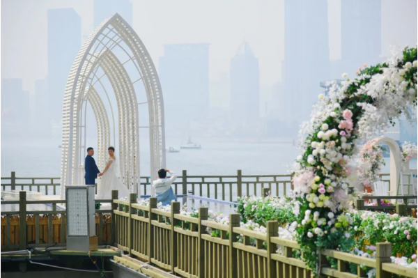 獨(dú)有的儀式感、濃郁的喜慶氛圍,為城市增添了風(fēng)景,為景區(qū)增加了流量,而那些見證愛情的景觀,不少成為網(wǎng)紅打卡點(diǎn)。