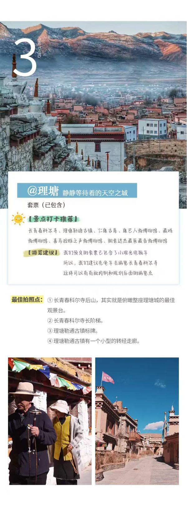? 然后理塘最著名的景點,同時也是318國道上最大的格魯派寺院【長青春科爾寺】,寺廟聲名遠(yuǎn)播,享有“上有拉薩三大寺,中有理塘長青春科爾寺,下有安多塔爾寺”之美譽,寺內(nèi)珍藏有各種類型的釋迦牟尼鍍金銅像,佛教經(jīng)典、三世達(dá)賴用過的馬鞍、明清時代的壁畫等珍貴文物。長青春科爾寺旁邊還有今年爆火的【勒通古鎮(zhèn)】,這是全國唯一一個依托倉央嘉措并打造倉央嘉措一生之路的特色文化景點,我們在這里可以游覽倉央嘉措博物館,倉央嘉措也留有名篇“潔白的仙鶴,請把翅膀借給我,不去遙遠(yuǎn)的地方,到理塘轉(zhuǎn)一轉(zhuǎn)就飛回”來描述這個地方。