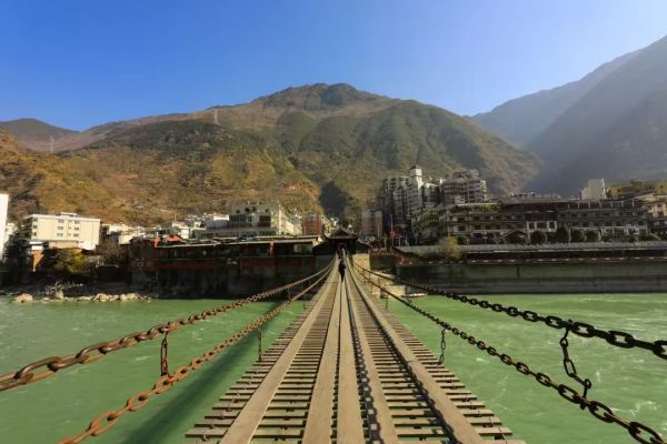 ? 成都出發(fā)到達(dá)瀘定縣城,行走在瀘定鐵索橋拍照留影,感受紅軍飛奪瀘定橋的驚險雄壯!