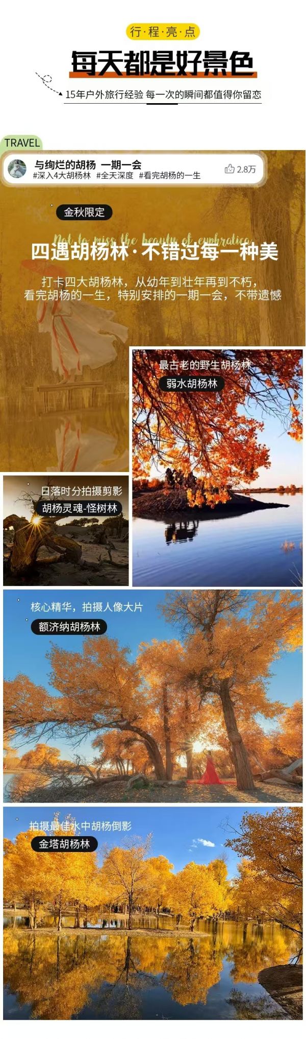 3. 額濟(jì)納金秋盛宴每年只有一個(gè)月的賞味期,全國各地的游客蜂擁而至,小鎮(zhèn)各項(xiàng)資源過載,當(dāng)?shù)夭粩嗤晟破渑涮踪Y源但基礎(chǔ)設(shè)置仍較薄弱,請大家以平常心對待。