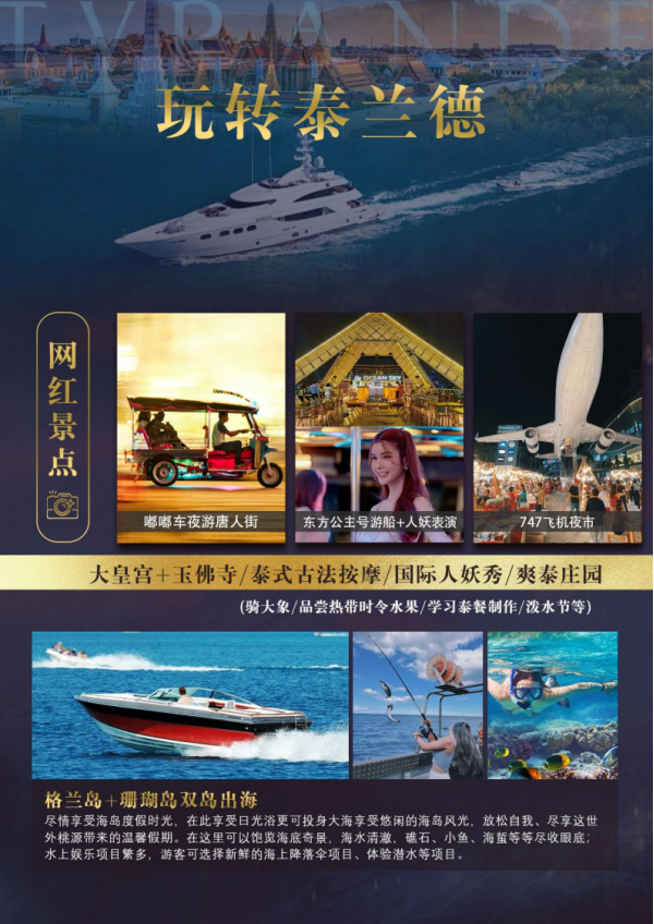 大皇宮-長尾船游湄南河-水門大佛-鄭王廟(入內(nèi)參觀)-泰式古法按摩-國際人妖秀-網(wǎng)紅夜市