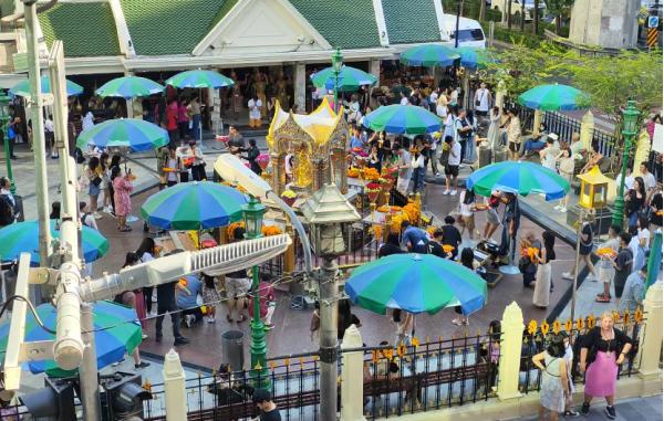 前往【皇家寺】,寺中供奉著佛像可供游客為家人祈福,我們先去拜泰國的四面佛。 四面佛的四面順時(shí)針方向第一面求平安、第二面求事業(yè)、第三面求愛情婚姻、第四面求金錢。燒一套香燭,插一小束花在佛前,據(jù)說是很靈的。