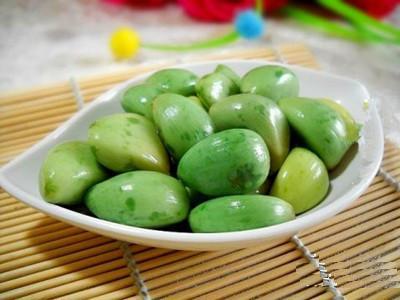 泡臘八蒜是一道主要流行于華北地區(qū)的傳統(tǒng)小吃,是臘八節(jié)的節(jié)日食俗。臘八蒜材料其實非常簡單,就是醋和大蒜瓣兒。做法也是極其簡單,將剝了皮的蒜瓣兒放到一個可以密封的罐子,瓶子之類的容器里面,然后倒入醋,封上口放到一個冷的地方。慢慢地,泡在醋中的蒜就會變綠,最后會變得通體碧綠的,如同翡翠碧玉。