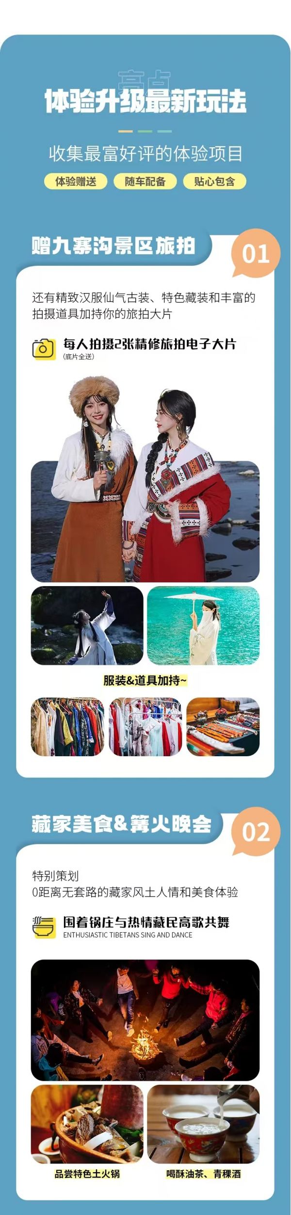 (5)走進(jìn)藏家藏文化體驗(yàn)由領(lǐng)隊(duì)/司機(jī)視實(shí)際情況靈活安排在D2或D3;如因九寨溝防疫政策規(guī)定,走進(jìn)藏家暫停營業(yè),則晚餐調(diào)整為團(tuán)餐,望您諒解。