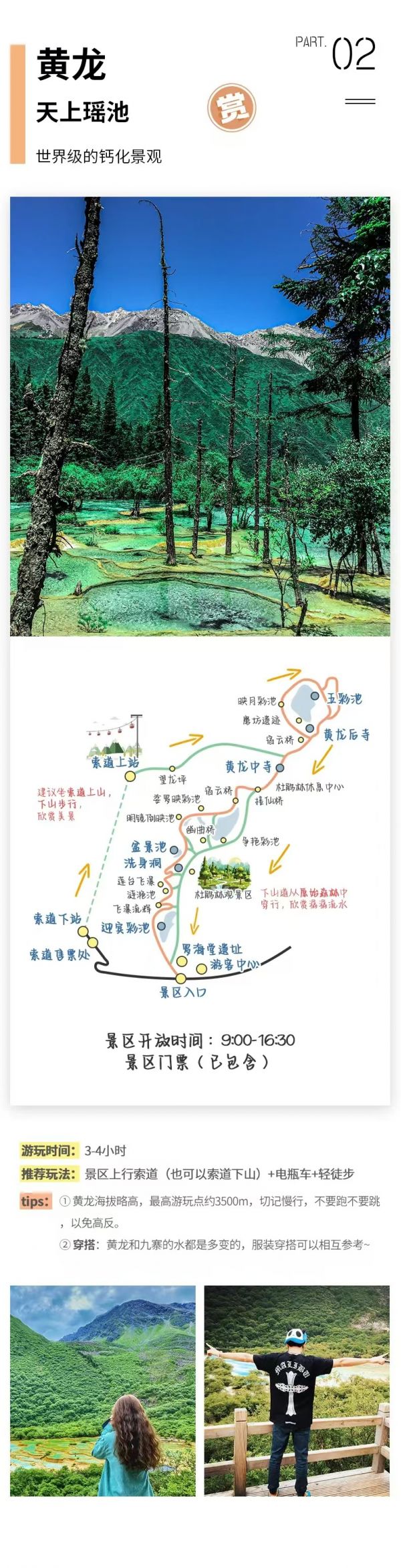 (2)特別提示:12月16日-3月31日期間黃龍索道停運(yùn),屆時(shí)需步行上下游覽黃龍景區(qū),敬請知曉。