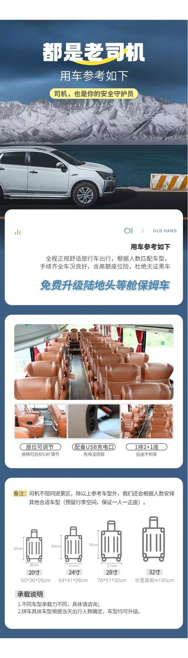 注意事項(xiàng):出發(fā)前一天晚上18:00-22:30通知接你的具體時(shí)間,請務(wù)必保持電話暢通(接早的時(shí)間根據(jù)師傅線路決定,為保障整個(gè)團(tuán)隊(duì)的順利出行請注意配合時(shí)間安排,感謝理解)