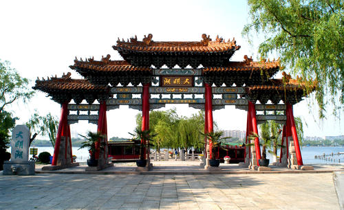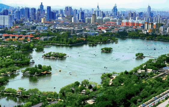 大明湖是濟(jì)南三大名勝之一,是繁華都市中一處難得的天然湖泊,也是泉城重要風(fēng)景名勝和開放窗口,聞名中外的旅游勝地,素有“泉城明珠”的美譽(yù)。它位于濟(jì)南市中心偏東北處、舊城區(qū)北部。大明湖是一個(gè)由城內(nèi)眾泉匯流而成的天然湖泊,面積甚大,幾乎占了舊城的四分之一。市區(qū)諸泉在此匯聚后,經(jīng)北水門流入小清河?,F(xiàn)今湖面46公頃(690畝),公園面積86公頃(1290畝),湖面約占百分之五十三,平均水深2米左右,最深處約4米。