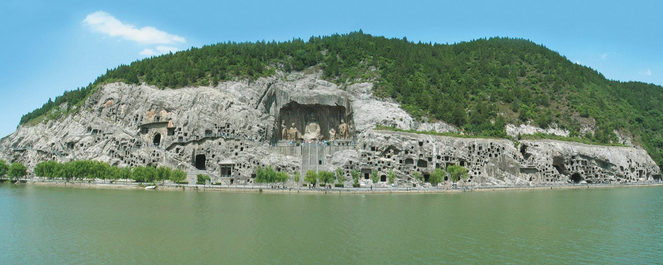 龍門(mén)石窟位于河南省洛陽(yáng)市洛龍區(qū)伊河兩岸的龍門(mén)山與香山上,開(kāi)鑿于北魏孝文帝年間,之后歷經(jīng)東魏、西魏、北齊、隋、唐、五代、宋等朝代連續(xù)大規(guī)模營(yíng)造達(dá)400余年之久,南北長(zhǎng)達(dá)1公里,今存有窟龕2345個(gè),造像10萬(wàn)余尊,碑刻題記2800余品。其中“龍門(mén)二十品”是書(shū)法魏碑精華,褚遂良所書(shū)的“伊闕佛龕之碑”則是初唐楷書(shū)藝術(shù)的典范。
