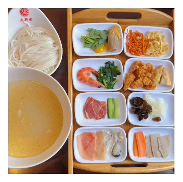 - 湯:用豬筒骨、老母雞等食材長(zhǎng)時(shí)間熬制而成,湯鮮味美、滾燙濃郁。