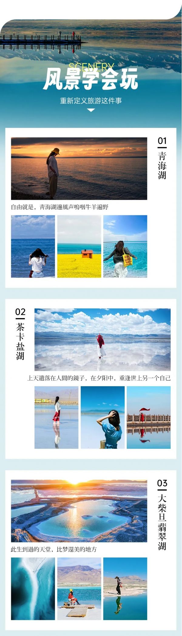 告別水上雅丹前往大柴旦翡翠湖,一路仍是廣袤戈壁與連綿山巒。臨近翡翠湖,空氣都透著清新。翡翠湖由眾多鹽湖組成,碧綠湖水在陽光照耀下,像散落人間的翡翠般閃耀。湖水顏色隨天氣、光線變化,時而祖母綠,時而薄荷綠,時而淡藍,如夢似幻。湖邊鹽灘潔白,與碧綠湖水形成鮮明對比。漫步湖邊,腳下鹽灘柔軟,眼前美景如畫,身心都得到放松。在這里,既能賞湖景,又能了解鹽湖形成與鹽業(yè)發(fā)展,感受自然神奇與人類智慧。