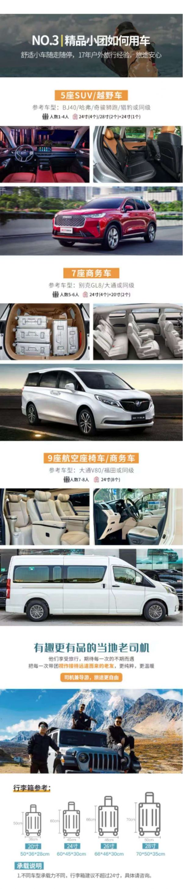 服務(wù):由經(jīng)驗(yàn)豐富的司機(jī)供向?qū)Х?wù)(司機(jī)不進(jìn)景區(qū))。