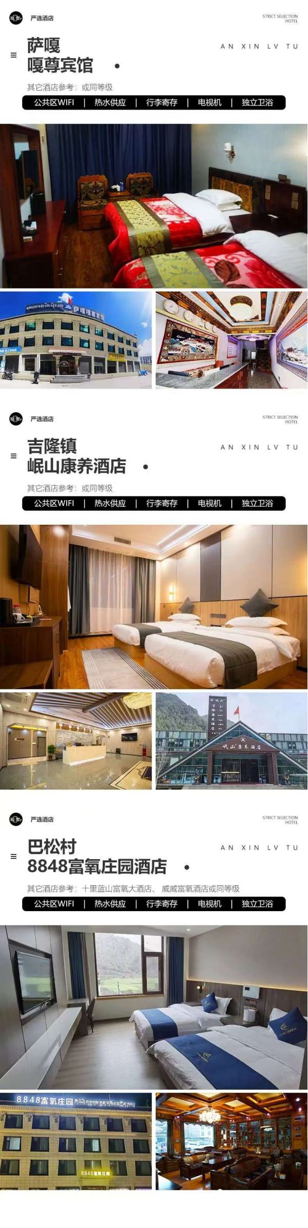 巴松村:8848富氧莊園酒店、十里藍(lán)山富氧大酒店、 威威富氧酒店或其它同級(jí)酒店(阿里地區(qū)住宿條件艱苦,無(wú)法和城市相比)