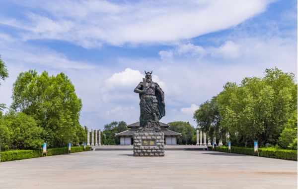后游覽【蚩尤陵】,蚩尤陵位于山東省聊城市陽谷縣十五里園鎮(zhèn),是為紀(jì)念上古部落首領(lǐng)蚩尤而建的文化遺存,由首級冢與陵園組成。陵園由錢運選規(guī)劃設(shè)計,占地105畝,中軸線分布陵門、蚩尤銅像(高10.8米)、祭壇等九座建筑 。據(jù)《漢書》《史記》等記載,蚩尤戰(zhàn)敗后首級葬于東平郡壽張縣闞鄉(xiāng)。