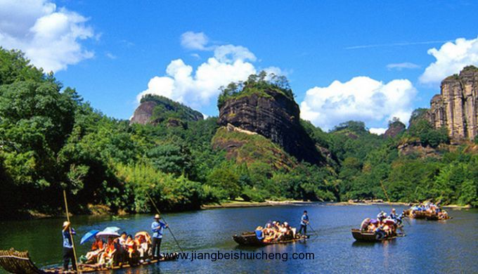 推薦理由:有九曲、三十六峰、七十二景、一百零八洞之奇,盛夏,山外暑氣逼人,山中卻有“靜聽(tīng)水聲真活潑,飽看山色自清涼”的感覺(jué)。武夷的秀在山。大王峰巍峨,玉女峰秀麗;武夷的靈在水。九曲溪從西向東,蜿蜒自如,灣灣藏佳景;青龍瀑布?xì)鈩?shì)恢宏,峽谷幽靜。平靜處如翡翠朦朧,飛瀉時(shí)如銀龍飛舞。武夷的名在茶。三十六峰、九十九巖,巖巖有茶,茶以巖名,巖以茶顯。