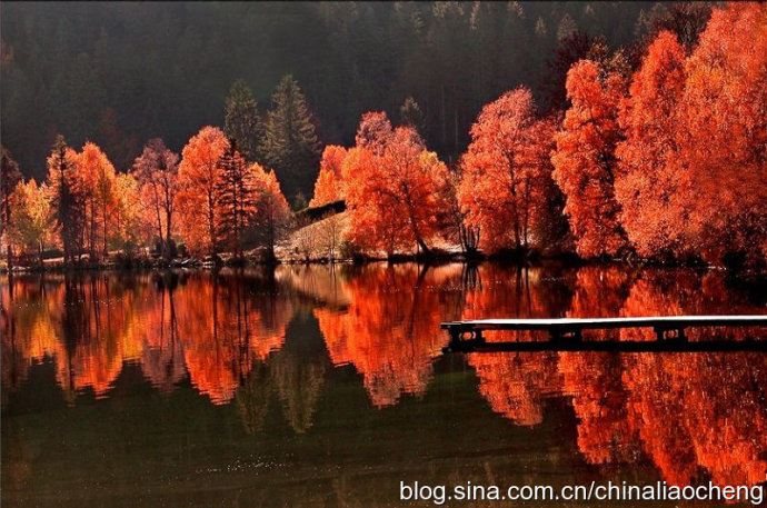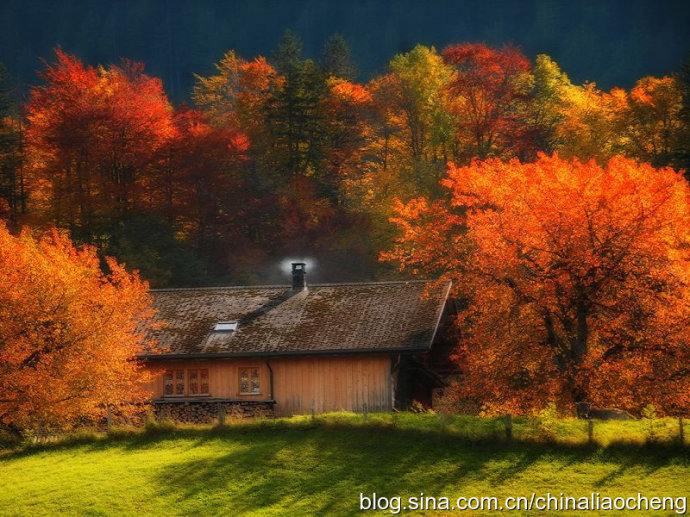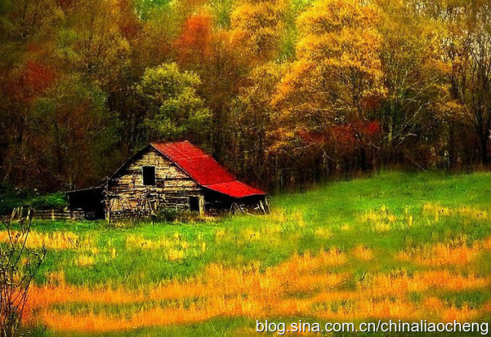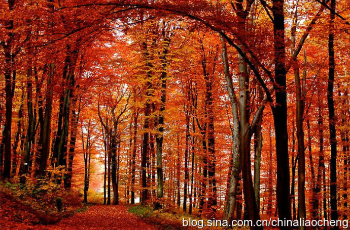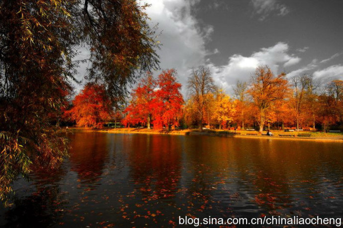 最動(dòng)人是秋林映著落日。那酡紅如醉,襯托著天邊加深的暮色。晚風(fēng)帶著清澈的涼意,隨著暮色浸染,那是一種十分艷麗的凄楚之美,讓你想流幾行感懷身世之淚,卻又被那逐漸淡去的醉紅所懾住,而情愿把奔放的情感凝結(jié)。