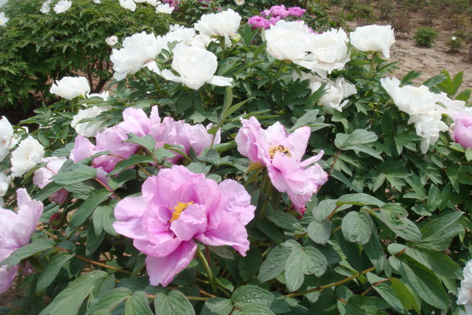 百花園面積一百畝,植牡丹十二萬多株,560個品種,芍藥六萬余株,270多個品種,以傳統(tǒng)稀有珍貴品種多,花色齊全,分布合理便于觀賞而馳名。同時培育出牡丹新品種賽雪塔、春紅嬌艷、銀紅球、百園粉等數(shù)十種,具有很高的觀賞價值。因而百花園又有“品種園”之稱。十幾年來,百花園牡丹不僅在杭州、蘇州、廣州、上海等城市舉辦大型牡丹展,而且與日、美、新加坡、荷蘭、臺灣等國家和地區(qū)開展交流,引進(jìn)日本的金寶、金閣、花王、太陽等品種。百花園東倚220國道,南靠市區(qū),交通方便。