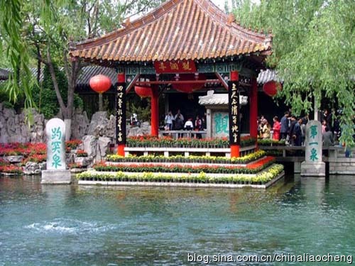 趵突泉景區(qū)在我們公園內西側,是全園構圖中心,由亭、堂、廊、榭組成了一個封閉空間,高低錯落的建筑像眾星捧月一樣,簇擁著噴突騰涌的趵突泉,人們可以從不同的角度欣賞泉景,被譽為濼水之源,在史書上第一次出現(xiàn)是<<春秋>>上關于魯桓公和濟襄公談判兩國邊界一事的記載。魯桓公十七年(公元前695年)。齊國和魯國因邊界爭執(zhí)發(fā)生戰(zhàn)爭,次年春,魯桓公到齊國談判邊界問題,會齊侯(齊襄公)于濼。濼,濼水的源頭,即趵突泉。所以趵突泉為人所知已經(jīng)有二千五、六百年的歷史了。當然那時濼水之源,名字并不叫趵突泉,北魏時,因泉上建有娥姜(英)廟,谷稱娥姜(英)水,直到唐宋八大家之一的北宋文學家曾鞏始稱為趵突泉,并流傳至今。不過,宋朝.金代曾有人稱叫“溫泉”、“檻泉”、“爆流泉”、“瀑流泉”等等,但都不如趵突泉這個名字精當傳神。