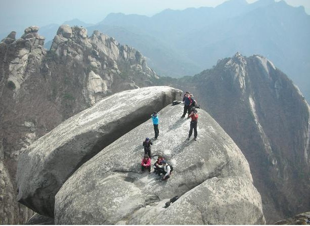 北漢山位于韓國首都首爾北面,其名字意為北面最大的山,也被稱為三角山、負(fù)兒岳。巨大花崗巖形成陡峭曲線是北漢山的最大特點,高聳的巖峰和巖峰間流淌著的清澈溪谷斷然可見。山峰千姿百態(tài),其中有836.5m的白云峰,巖峰和樹木之間生存有1,300余種動植物。巖峰中的第一高峰是仁壽峰的奇巖,世界聞名的懸崖仁壽峰達(dá)200m以上,光是路線就有100多個。站在白云臺頂上,透過云層,漢城和漢江一收眼底。