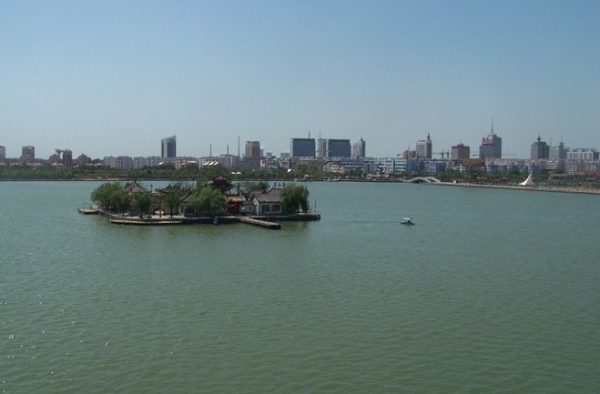 東昌湖始建于宋熙寧三年(公元1070年),在原護(hù)城河的基礎(chǔ)上經(jīng)歷代開挖而成,現(xiàn)有水域4.2平方公里,為中國江北地區(qū)罕見的大型城內(nèi)湖泊。東昌湖引黃河水為源,常年水深3-5米,湖水清澈,無任何工業(yè)污染;景色宜人,令游客流連忘返。東昌湖中心是已有千年歷史的1平方公里的正方形聊城古城。古城風(fēng)貌保存完好,以古城正中的光岳樓為中心,向四面輻射,形成東西南北四條古城區(qū)干道,其它大街小巷,也都是經(jīng)緯分明,垂直交叉,形成棋盤方格網(wǎng)狀骨架。