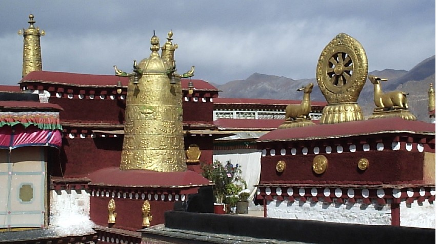 公元641年,“唐王以釋迦佛像,珍寶,金玉書櫥,三百六十卷經(jīng)典,各種金玉飾物作為(文成)公主的嫁奩。又給……卜筮經(jīng)典三百種,識(shí)別善惡的明簽,營(yíng)造與工技著作六十種,……以車載釋迦佛像,以大隊(duì)騾馬載珍寶、綢帛、衣服及日常必需用具(入吐蕃)。”在文成公主進(jìn)藏之前的公元634年,版權(quán)所有山東聊城聊之旅國(guó)際旅行社有限公司,轉(zhuǎn)載必究!泥婆羅(尼泊爾)國(guó)王鴦?shì)敺ツσ呀?jīng)將其女尺尊公主嫁給松贊干布,尺尊公主入藏時(shí)亦隨帶著一尊釋迦牟尼像,大乘佛教的經(jīng)典著作,各種精巧的工藝品和工匠等等。文成公主進(jìn)藏后不久,就協(xié)助尺尊公主修建了大昭寺,“與此同時(shí),也從中原召來了很多良工巧匠修建惹謨伽神變寺。