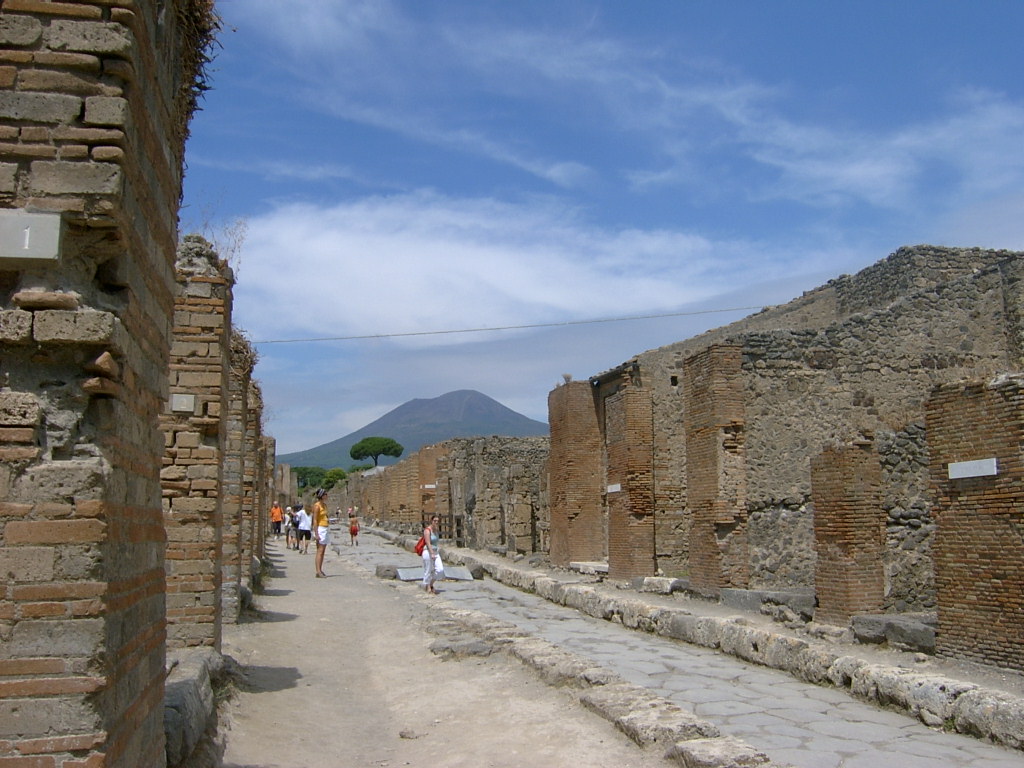 如今的龐貝古城已被聯(lián)合國教科文組織定為世界文化和自然遺產(chǎn),游客們稱這里是“天然的歷史博物館”,它每天吸引著數(shù)以萬計(jì)的來自世界各地的游人們來這里參觀。我穿梭在古城廢墟的大街小巷,進(jìn)出于半毀的民宅、別墅、貿(mào)易市場(chǎng)、商鋪、面包房、溫泉澡堂、倉庫以及劇場(chǎng)、斗獸場(chǎng)、運(yùn)動(dòng)場(chǎng),不覺心潮起伏,浮想聯(lián)翩。