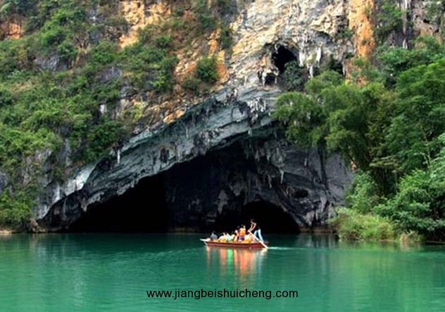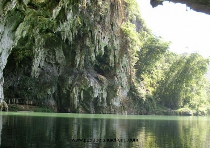 百鳥巖,位于廣西巴馬瑤族自治縣甲篆鄉(xiāng)烈屯西北面的漠齋山下,別名龍虎洞。因洞內(nèi)燕子棲集,蝙蝠掠飛,又名百鳥洞。盤陽河自吉屯白熊洞潛入山下,形成1000多米的伏流暗河后,在此洞流出。洞口寬50米,一石壁把洞口分成兩個略呈三角形的左右洞口。左側(cè)洞口寬40米,高16米,兩洞口內(nèi)側(cè)相通。洞深500米,蜿蜒曲折,直通與白熊洞一山之隔的拉類坳下的一個側(cè)洞口。洞中水平如鏡,深不可測,寬處約40米,窄處10米,從洞口行舟至300米轉(zhuǎn)折處,距水面30米處有一圓形天窗,山坳之光照到水面,猶如舞臺上的光束,色彩紛呈,近右側(cè)洞口處有沙灘,版權(quán)所有山東聊城聊之旅國際旅行社有限公司,轉(zhuǎn)載必究!可停靠舟船。沙灘右側(cè)是一塊30多平方米的石臺,臺面深溝淺窩,坑坑坎坎,石臺一側(cè),洞壁雪白,可攀援其中。有石鷹、石柱、石幔、石觀音菩薩等,百態(tài)千姿,令人目不暇接。石臺的周圍有仙女梳妝、海螺石,石螺對面有石桌、石缸和石松果等。側(cè)面洞口外香椿林下野花艷目植被繁衍,把洞口點(diǎn)綴得幽靜雅致。洞中歧洞叉水道不可勝數(shù),密如蜂房,不知所向,整個洞仿佛一座裝飾華麗、景幻莫測的水下龍宮。其奇特的景象似桂林蘆笛巖,又因非乘舟不能游覽,游人贈予“水上蘆笛巖”的美譽(yù)。