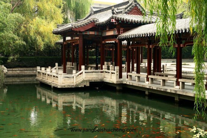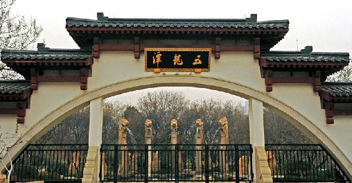 五龍?zhí)?,位于濟南舊城西門外,洛源橋北,南臨趵突泉,北接。潭周名泉眾多,形成五龍?zhí)度?,為濟南四大泉群之一,?nèi)有泉池二十七處。公園的建園風(fēng)格兼具有南北造園之精華,是以潭池溪港等景觀構(gòu)成,質(zhì)樸野逸為特點的園林水景園。此水域風(fēng)景秀麗,柳絲醮波,鳴禽啾啾,荇藻漂浮,錦魚嬉戲,素有“夾岸桃花,恍若仙境”之美譽,風(fēng)景幽雅獨具特色。