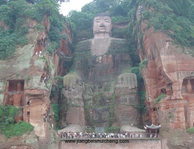 版權(quán)所有,山東聊城聊之旅國(guó)際旅行社有限公司,轉(zhuǎn)載必究!在大佛左右兩側(cè)沿江崖壁上,還有兩尊身高超過(guò)16米的護(hù)法天王石刻,與大佛一起形成了一佛二天王的格局。與天王共存的還有數(shù)百龕上千尊石刻造像,宛然匯集成龐大的佛教石刻藝術(shù)群。大佛左側(cè),沿“洞天”下去就是近代開(kāi)鑿的凌云棧道的始端,全長(zhǎng)近500米。右側(cè)是唐代開(kāi)鑿大佛時(shí)留下的施工和禮佛通道——九曲棧道。佛像雕刻成之后,曾建有七層樓閣覆蓋(一說(shuō)九層或十三層),時(shí)稱(chēng)“大佛閣”、“大像閣”;宋時(shí)稱(chēng)“凌云閣”、“天寧閣”;元代稱(chēng)“寶鴻閣”;明代俗稱(chēng)“佛棚”、清代俗稱(chēng)“佛亭”,最終廢毀……至今,仍舊可以從大佛兩側(cè)的山崖上看到多處孔穴和屋檐痕跡,專(zhuān)家證實(shí),這些正是歷代建造或維修樓閣時(shí),安置梁柱和屋檐的地方。