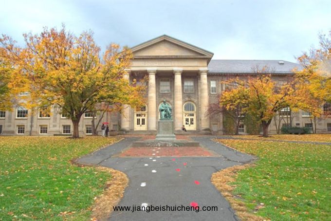 【校訓】康奈爾大學于1865 年建校,它的校訓起源于創(chuàng)始人埃茲拉·康奈爾寫給首任校長的一封信,其中有一句話是:“I would found an institution where any person can find instruction in any study”。即“我要建立一所大學以使得所有的人可以學到任何他所想學的學科。”從此這句話就成了康乃爾大學的校訓??的藸柕男S栍悬c像孔子的:“有教無類,因材施教。”從教育理念上講,它體現(xiàn)了任何人都有權(quán)力受到教育的平等精神,從教學方法上講,它體現(xiàn)了根據(jù)學生特點和興趣進行引導的工作態(tài)度,這就是康奈爾大學校訓的精髓和康奈爾的立校之本。