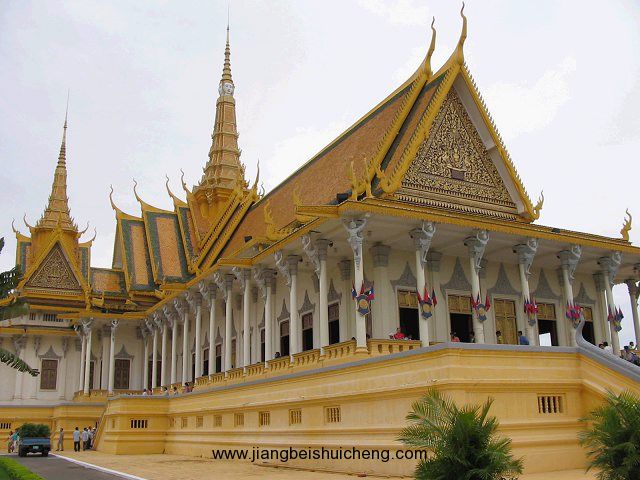 是諾羅敦國王于1866——1870年建造的,坐落在洞里薩河邊,也稱四臂灣大王宮,有寬敞平整干凈的馬路和大塊的草坪廣場,包含國王的住所在內(nèi)共有20余座建筑。王宮為長方形,長435米,寬402米,外有城墻。王宮的建筑具有高棉傳統(tǒng)建筑風(fēng)格和宗教色彩,宮殿均有尖塔,代表繁榮;殿身涂以黃、白兩色,黃色代表佛教,白色代表婆羅門教。王宮最初為木結(jié)構(gòu),后改建為水泥結(jié)構(gòu),但保持了原來的風(fēng)貌。版權(quán)所有山東聊城聊之旅國際旅行社有限公司,轉(zhuǎn)載必究!王宮內(nèi)還有銀殿(Silver Pagoda)和拿破侖三世博物館。銀殿因地面鋪有5000塊銀磚而得名,是由諾勒丹國王于1829年用意大利大理石所興建,寺內(nèi)收藏大量珍貴文物,包括一尊西索瓦國王的金制塑像(重90公斤,上嵌9584粒鉆石,最重的一顆達(dá)25克拉),一尊17世紀(jì)的大型翡翠玉佛像,一幅40多厘米高的鑲金壁畫等等?;乩鹊膲Ρ谏侠L有歷代王朝功績和宗教故事的壁畫,也是重要文物,并陳列著外國國家元首送的禮品。參觀王宮有時(shí)間限制,而且著裝必須整潔。黃昏王宮廣場上人很多,既有納涼的本地人和僧侶,也有天南海北的游客。