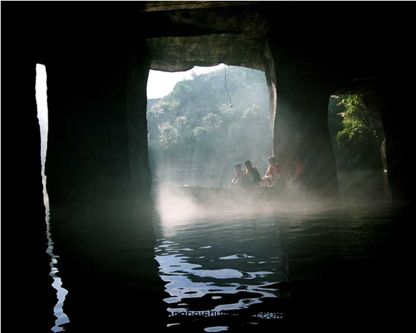 地下長(zhǎng)廊(2號(hào)洞)此洞在半山腰,洞口呈虎口張開之勢(shì)。入洞后隨坡下延,涼氣浸淫,花山謎窟,回望洞口,早已霧氣騰騰。版權(quán)所有,山東聊城聊之旅國(guó)際旅行社有限公司,轉(zhuǎn)載必究!洞內(nèi)有幾十根石柱昂然挺立,組成長(zhǎng)80米,寬1.5米、高4米的地下長(zhǎng)廊。右側(cè)這處有一方形洞口,入內(nèi)方知廊中有廊。其走向相同,但深度更深,足有百米,水呈翡翠綠色。在2號(hào)窟里,一幅天然的秋色圖再次讓人贊嘆不已。只見整個(gè)畫面均被褐黃色的秋葉渲染:黑色的叢林、山峰、古民居點(diǎn)綴于秋葉叢中,那古民居還能明顯地看出徽派的建筑風(fēng)格。近處,一條白色的小河從古民居前穿過(guò),這無(wú)疑就是位于石窟外山腳下的新安江了。