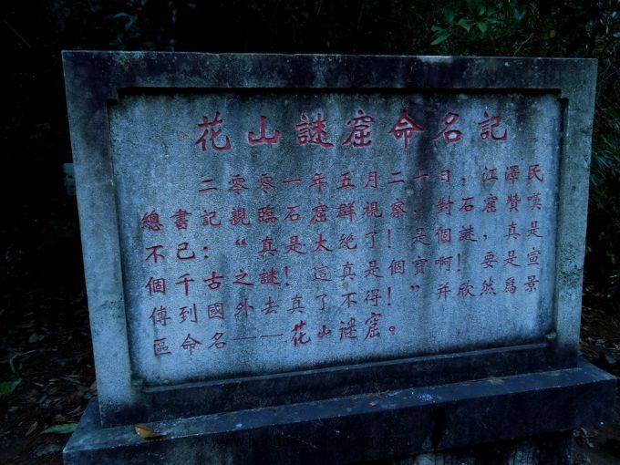 2001年5月20日,江澤民同志來(lái)到當(dāng)時(shí)的古徽州石窟群視察后欣然為景區(qū)命名、題詞為“花山謎窟”,并連聲感嘆:“真是太絕了!”“是個(gè)千古之謎!”“這真是個(gè)大寶貝,要是宣傳到國(guó)外去,了不得!”