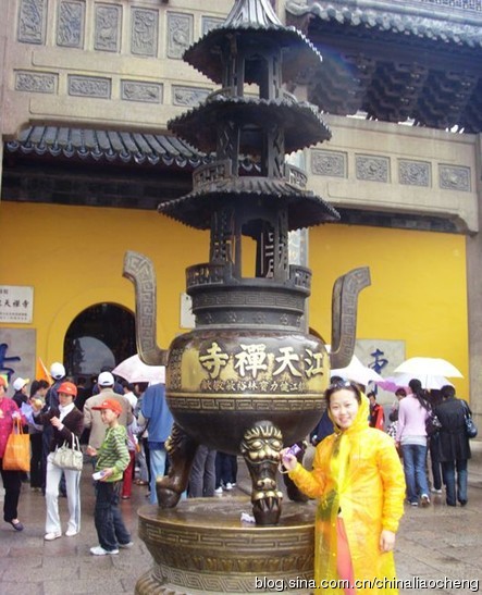 雨中的金山是美麗的,江天禪寺也是美麗的,“樹影中流見,鐘聲兩岸聞”不正是形容的金山江天禪寺嗎。清康熙帝于1687年秋登臨金山,因觀其上接蒼冥,下連洪流,江天一色,故賜名“江天禪寺”并沿襲至今??梢娖渚爸腊 =裉斓挠斡[到此結(jié)束了,雨中的金山是美麗的,沒有令人失望啊。