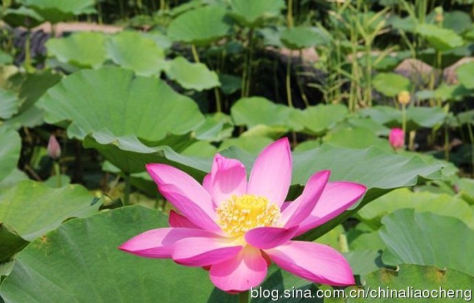 一只美麗的荷花屹立在無數(shù)的碧綠荷葉中,真是“萬綠叢中一點紅”啊