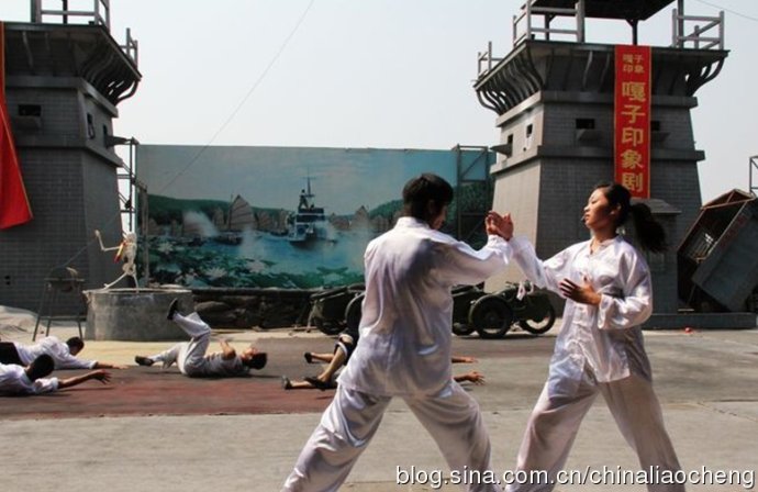 參加拍電視劇的人員正在排練著,看到他們我也想上去過一過當演員的癮啊