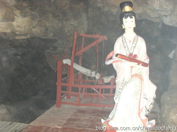 織女的石像和古代的織布機(jī),又為洞中增添了一點生機(jī)。傳說中織女的樣貌很好看,今日一見,果然名不虛傳。